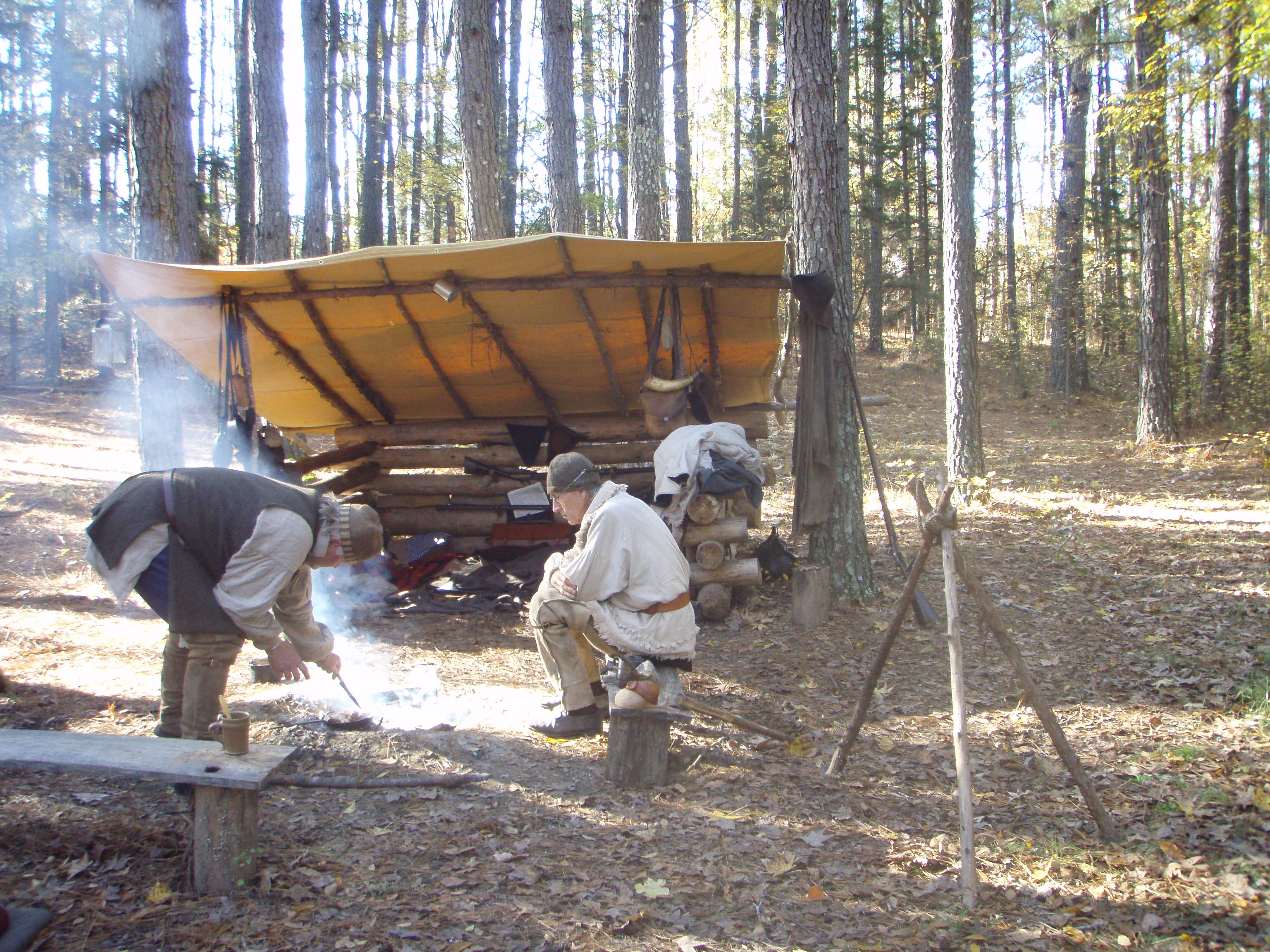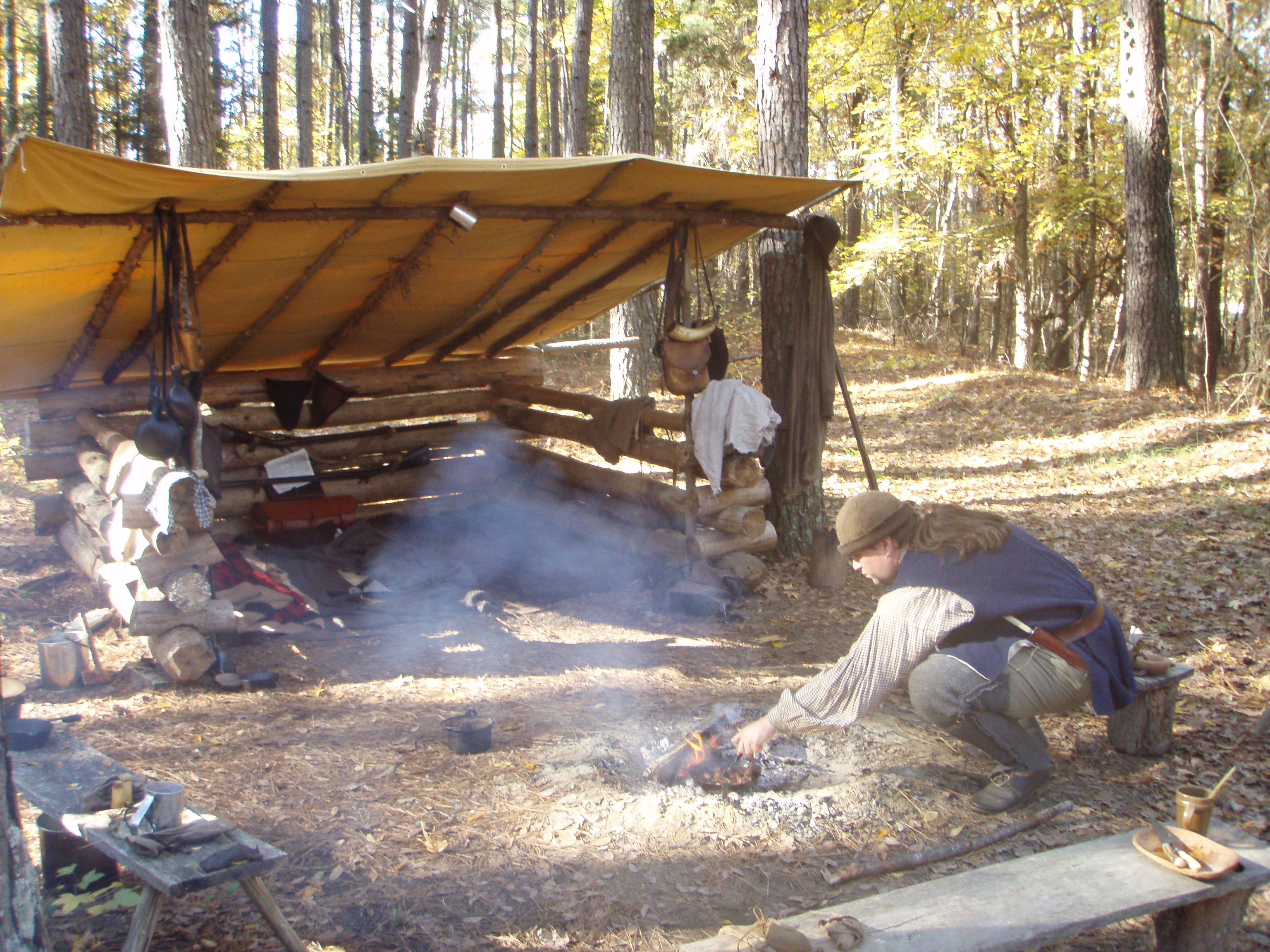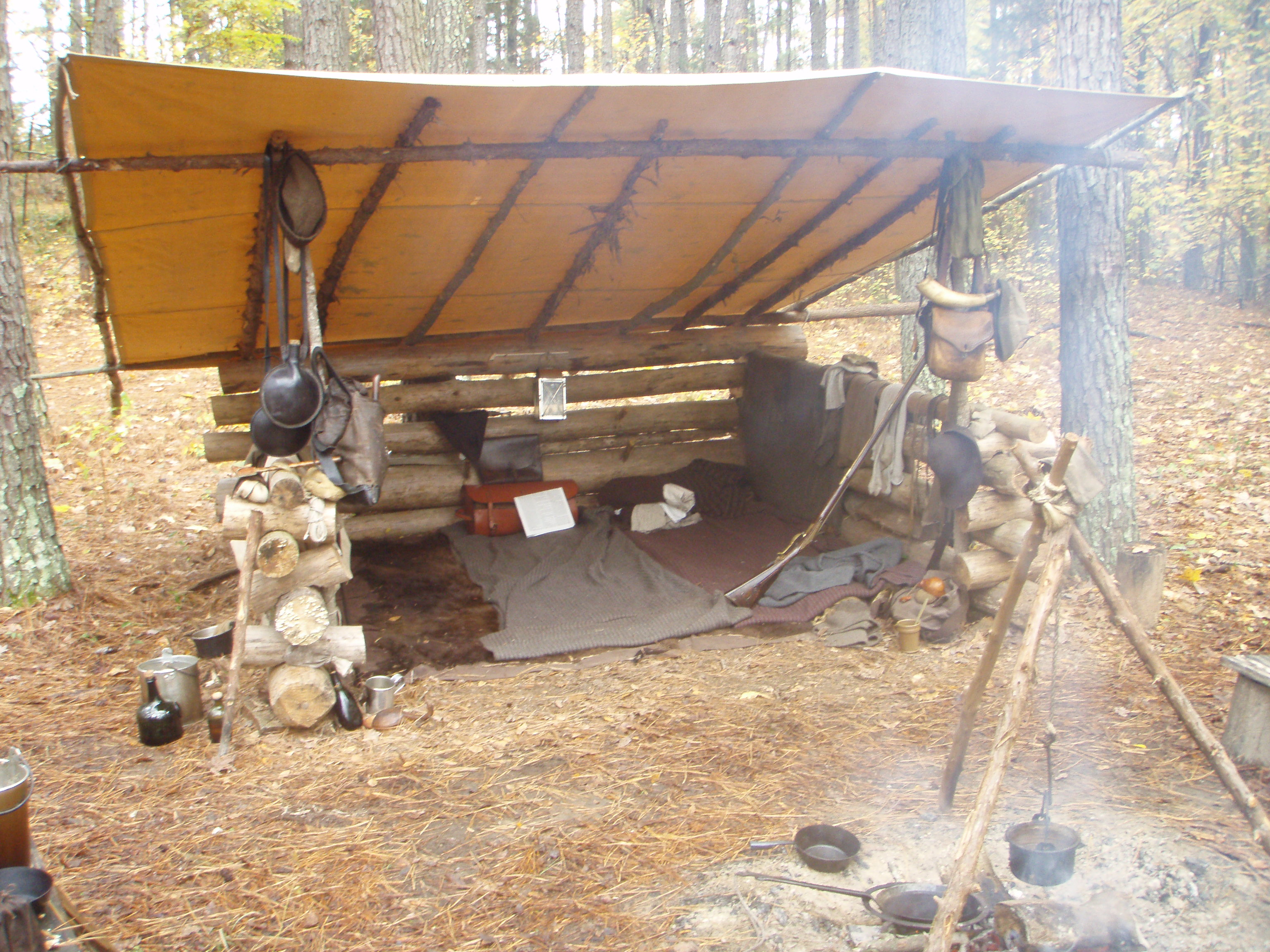 We did chink some of the logs. I hope to add more logs and shake roof. At that point I will chink it all in. We are also planning add another one directly across the fire pit. Two shelters with a fire in the middle should be nice.